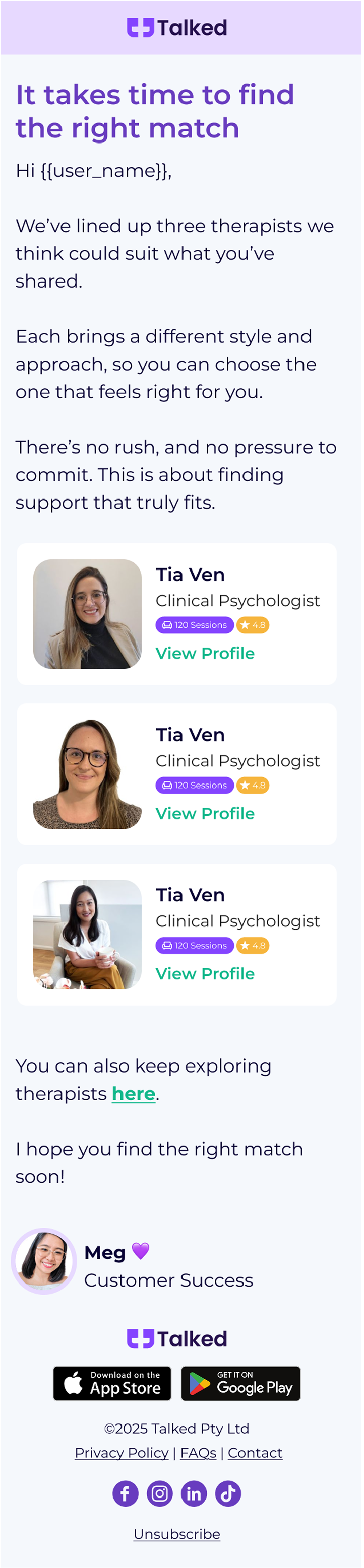 “We’ve matched you with therapists who specialise in (issue)”