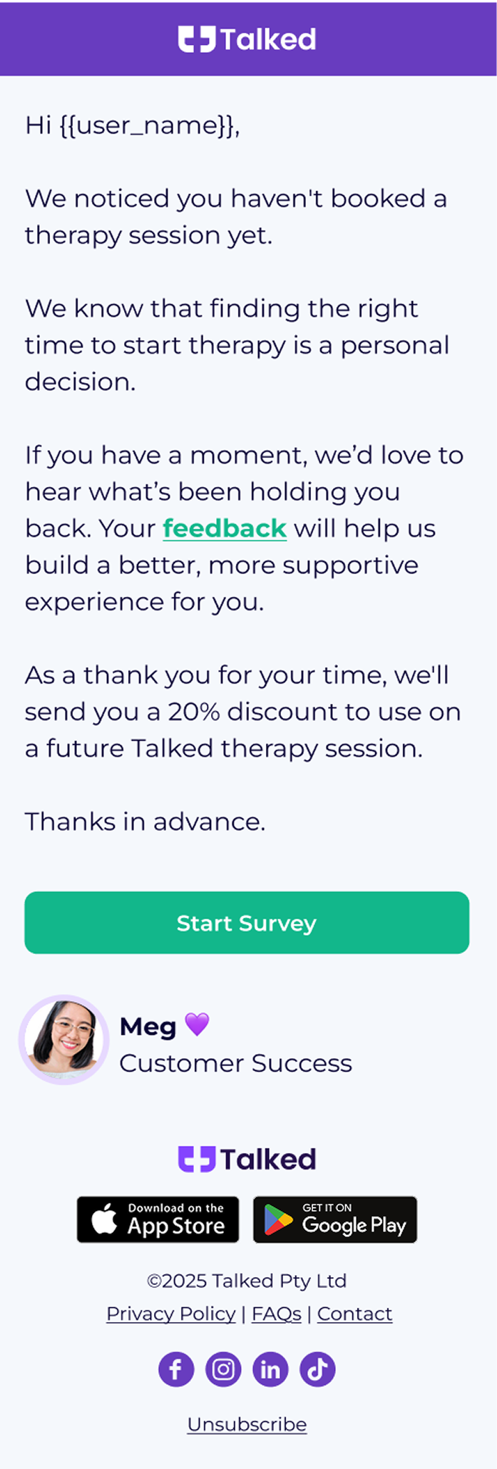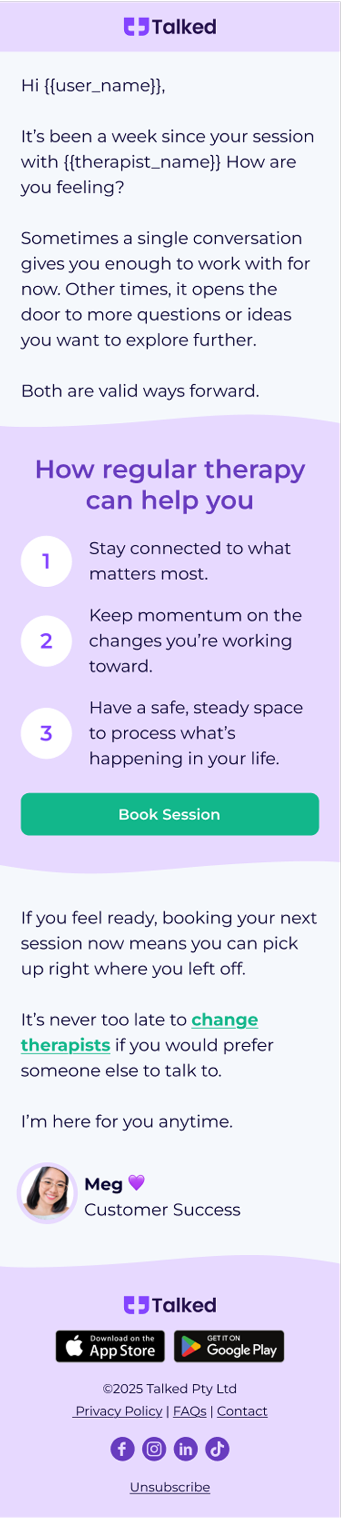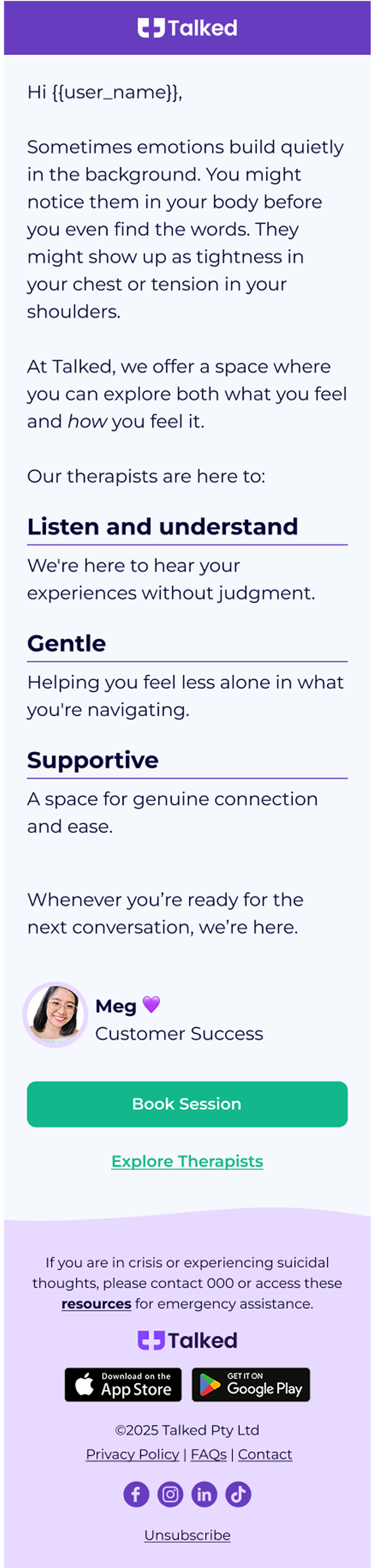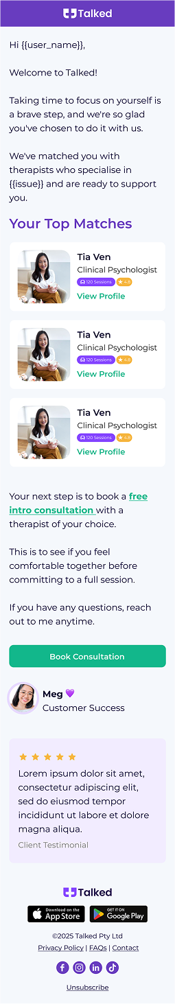Talked is an Australian platform making therapy more accessible, flexible, and stigma-free. As they scaled, they faced a common challenge in digital mental health: high intent signups that stalled before the first session, and users who needed more support to stay engaged long-term.